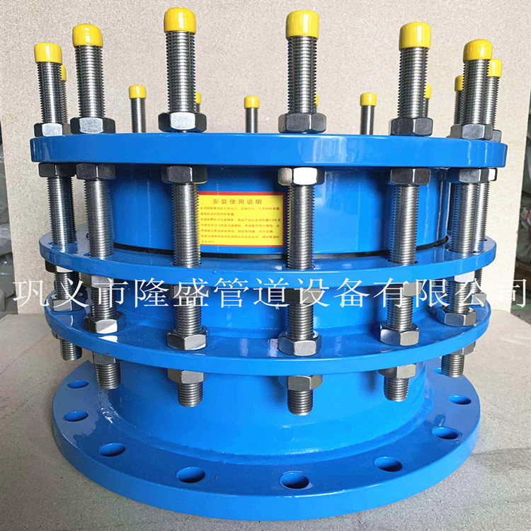 VSSFAF(CC2F)型可拆式雙法蘭傳力接頭:安裝在管道上后,根據所需的伸縮的伸縮距離進行限位,擰緊螺母,彈性密封圈在螺母壓蓋的作用下依靠相互斜度,緊壓在管子外圈起密封和連接作用,主要和管道閥門連接不但起到管道補償作用,更方便了閥門的維修及更換。