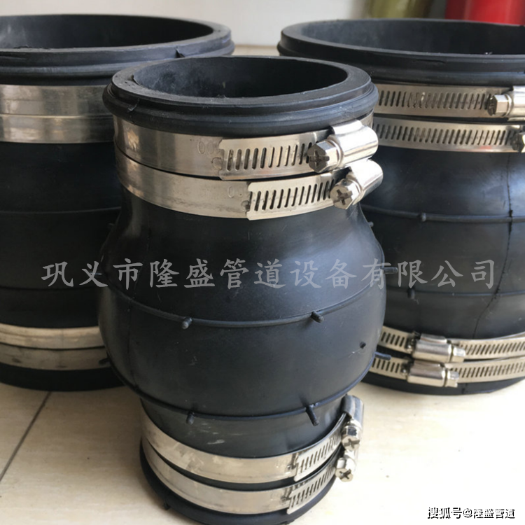 卡箍連接橡膠接頭拆卸時松開所述卡箍即可.從而達到補償管道因熱脹冷縮,輸水所產生的位移量之目的。