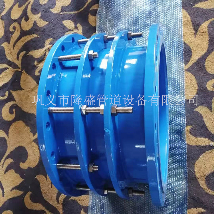 雙法蘭伸縮接頭是由本體、密封圈、壓蓋、伸縮短管等主要部件組成。在松套伸縮接頭原有性能的基礎上增設限位裝置,在伸縮量處用雙螺母鎖定。管道在允許的伸縮量中可以自由伸縮,一旦超過其伸縮量就起到限位,確保管道的安全運行,特別適用于有振動或有一定斜度及拐彎的管路中的連接。